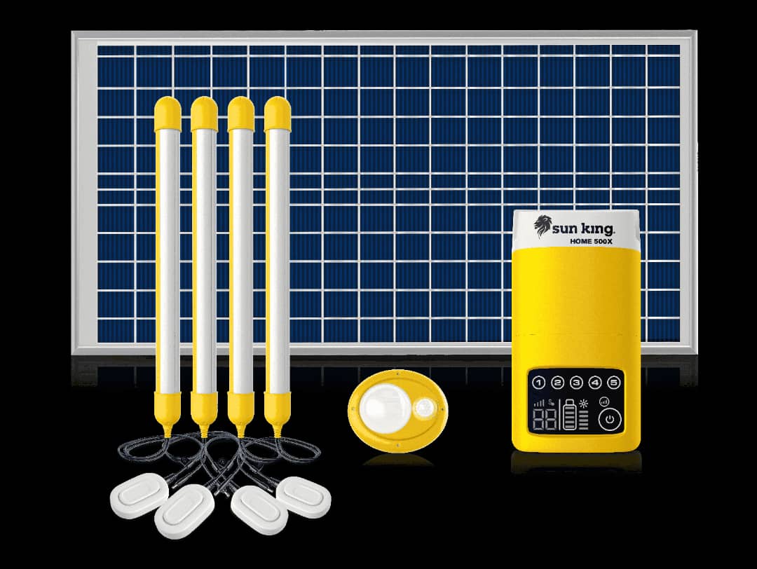 Charge multiple devices and light several rooms with this state-of-the-art solar home system. Combining four 200 lumen tube lights, USB charging for smartphones, and a motion sensor security light, the Home 500X provides businesses and families with essential, reliable lighting and power.